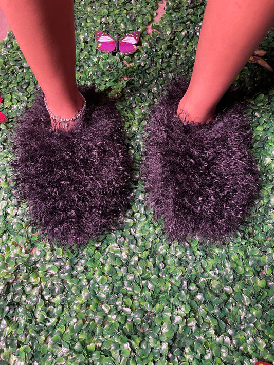 Black fluffy slippers