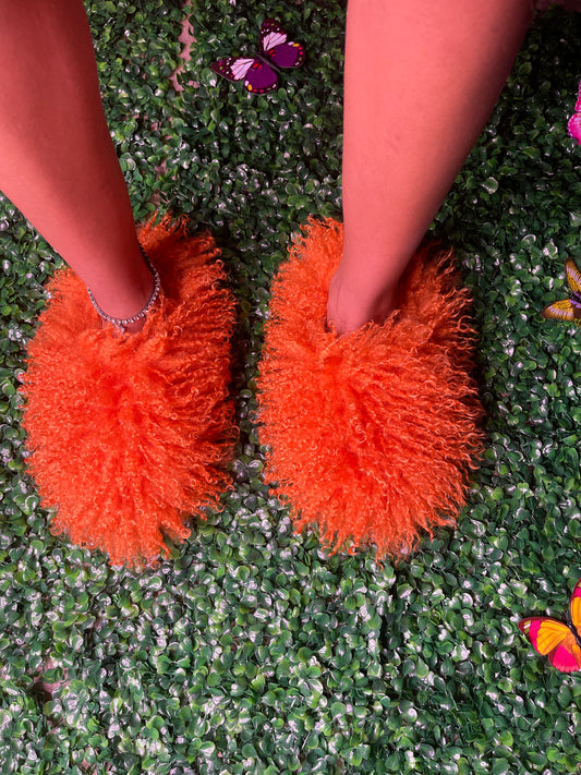 Orange fluffy slippers
