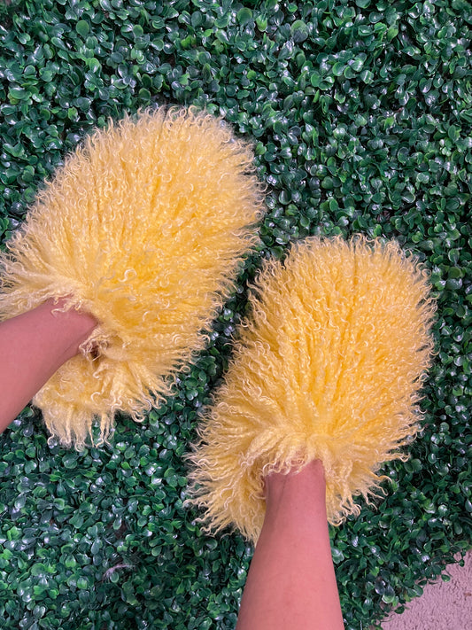 Yellow fluffy slippers